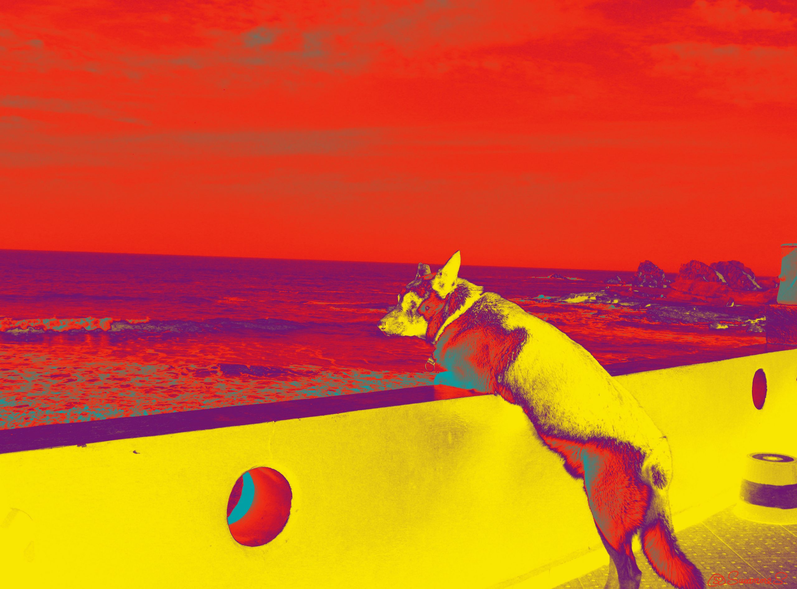 Portrait of the dog philosopher Rocky, mixed media on canvas 90 x 120 cm